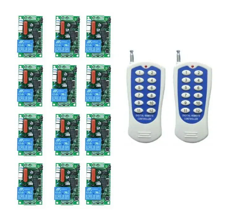 RF Wireless Remote Control AC 220V 10 A 1 channel 12 * Receiver +1-2* Transmitter Learning code Gar